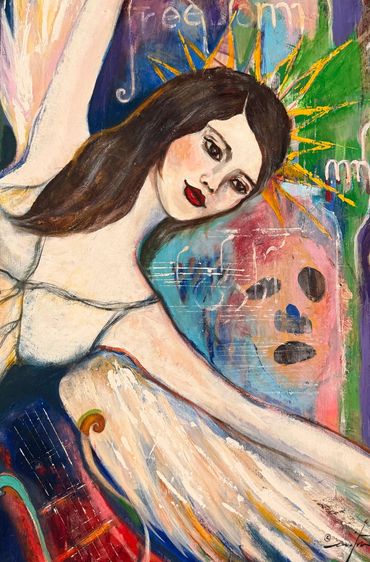 My art form includes abstract acrylic, multi-media art, iconic figurative paintings, surrealistic, impressionistic, fusion styles, and photography.